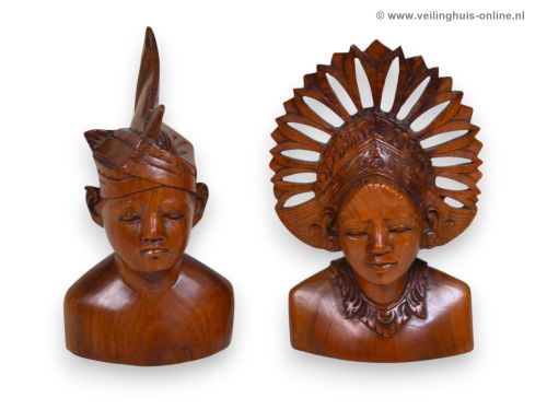 | Bijzonderheden | Een paar fraaie handgesneden Balinese bruidsbeelden uit de jaren vijftig. Bruidegom: 6,5 x 4,5 x 13,5 cm Bruid: 7,5 x 4,5 x 13,5 cm |