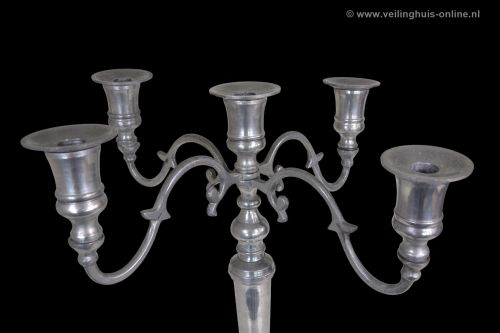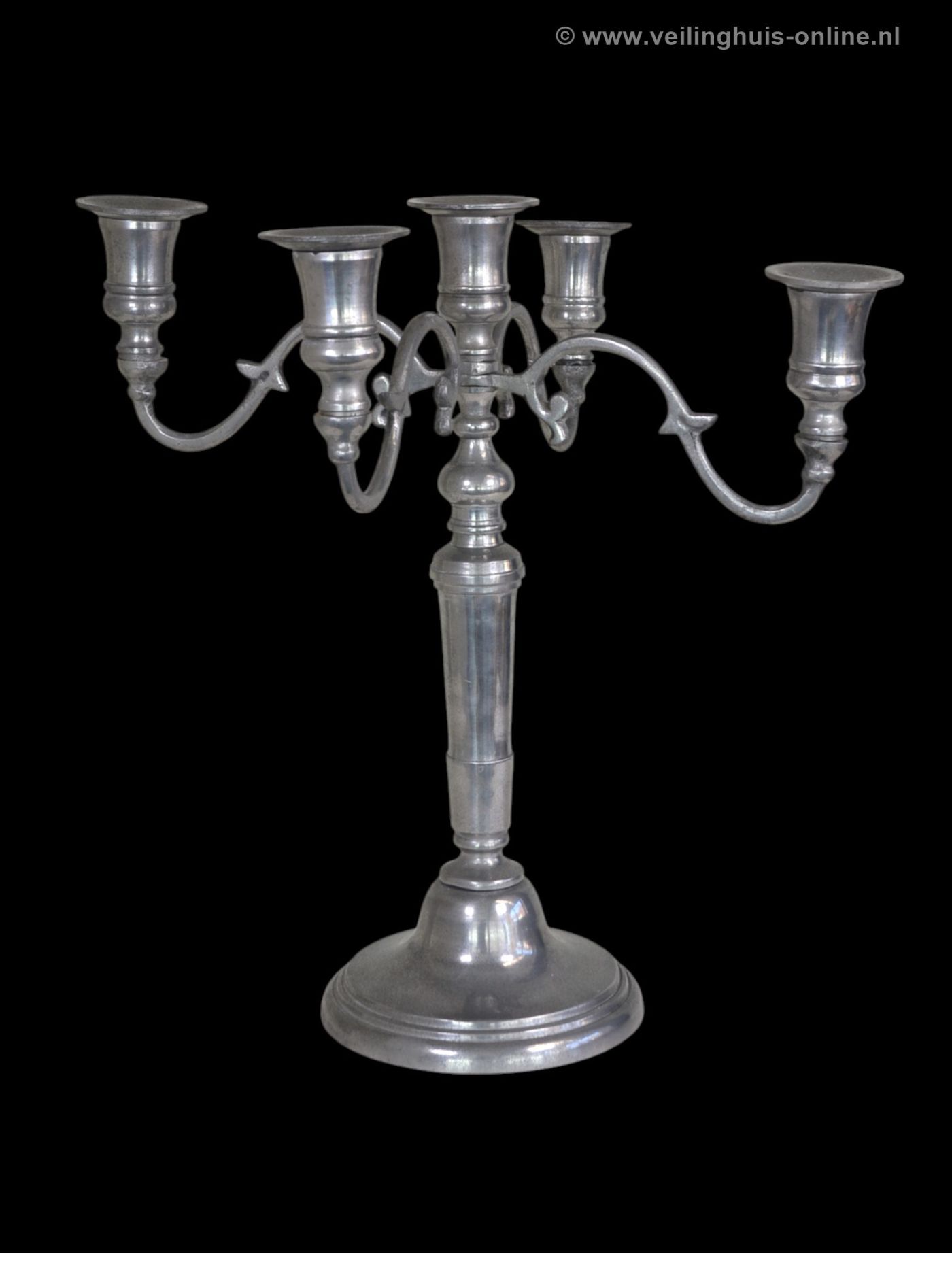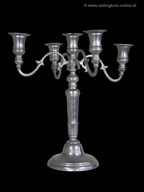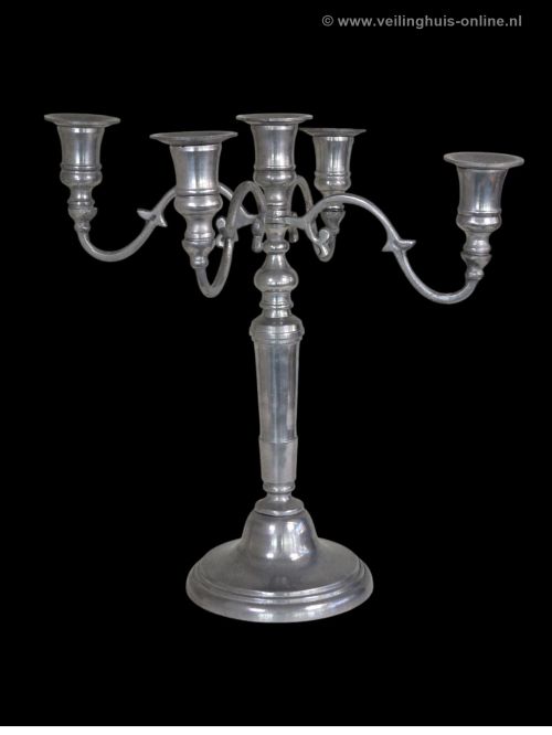 | Bijzonderheden | Sierlijke, vijfarmige kandelaar met een klassieke voet gemaakt van recycled aluminium. Met vijf lange kaarsen erin produceer je voldoende licht om het kunstlicht uit te laten tijdens het "diner a la Maison" |