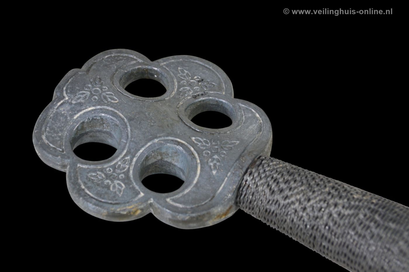 | Bijzonderheden | Replica van een ceremonieel zwaard, het zwaard van de katholieke koningen Dit type zwaard was een symbool van koninklijke macht en werd gebruikt bij religieuze en politieke ceremonies in Spanje Het originele zwaard dateert uit de periode van de hereniging van Spanje onder koningin Isabella en koning Ferdinand aan het einde van de 15e Eeuw. Opschrift op het handvat Tanro Monta - Monta Tanto wat "Zoveel is de een waard, zoveel is de ander" betekent, verwijzend naar de gelijke autoriteit van de koning en koningin. Verkoop 18+ - Geen verzending mogelijk Wettelijke aspecten in Nederland In Nederland mag je een zwaard bezitten als je ouder bent dan 18 jaar. Echter, het dragen van een zwaard op de openbare weg is niet toegestaan, tenzij het goed verpakt of verborgen is. Mensen die voor hun werk (bijvoorbeeld bij ceremoniële gelegenheden) een zwaard moeten dragen, moeten een document kunnen tonen waaruit blijkt dat ze een geldige reden hebben. |