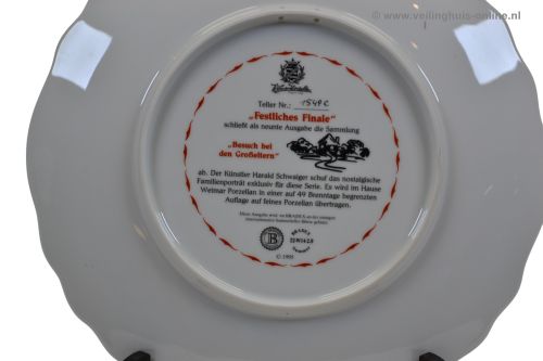 | Bijzonderheden | 8 Verzamelborden Nr 22-w-14-2.1 Nr 22-w-14-2.2 Nr 22-w-14-2.4 Nr 22-w-14-2.5 Nr 22-w-14-2.6 Nr 22-w-14-2.7 Nr 22-w-14-2.8 Nr 22-w-14-2.9 Festliches Finale Ø 25 cm geschubde rand In de originele verpakkingen, de borden zijn voorzien van een certificaat van echtheid |