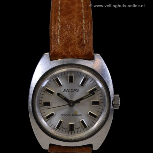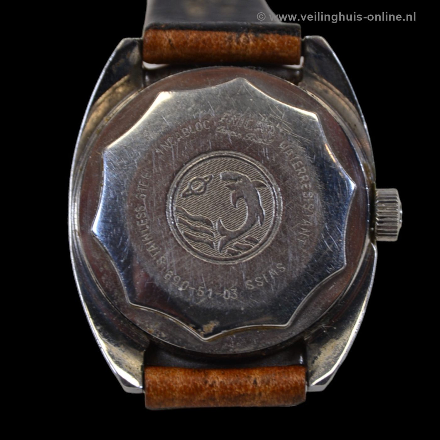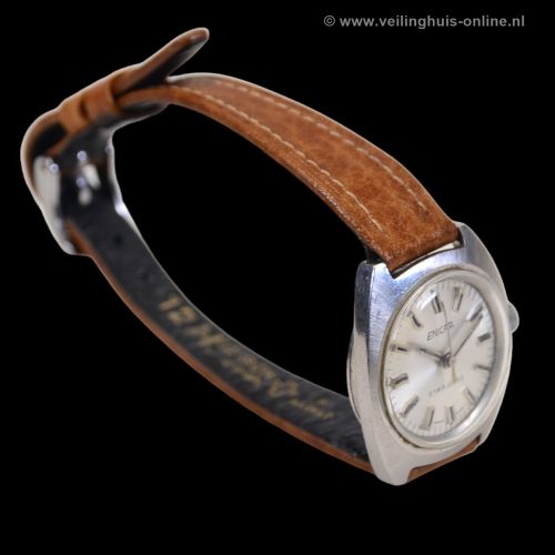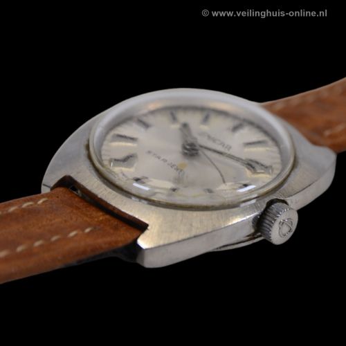 | Bijzonderheden | Vintage mechanisch polshorloge in zeer goede staat met leren polsband Swiss uurwerk Waterresistant |