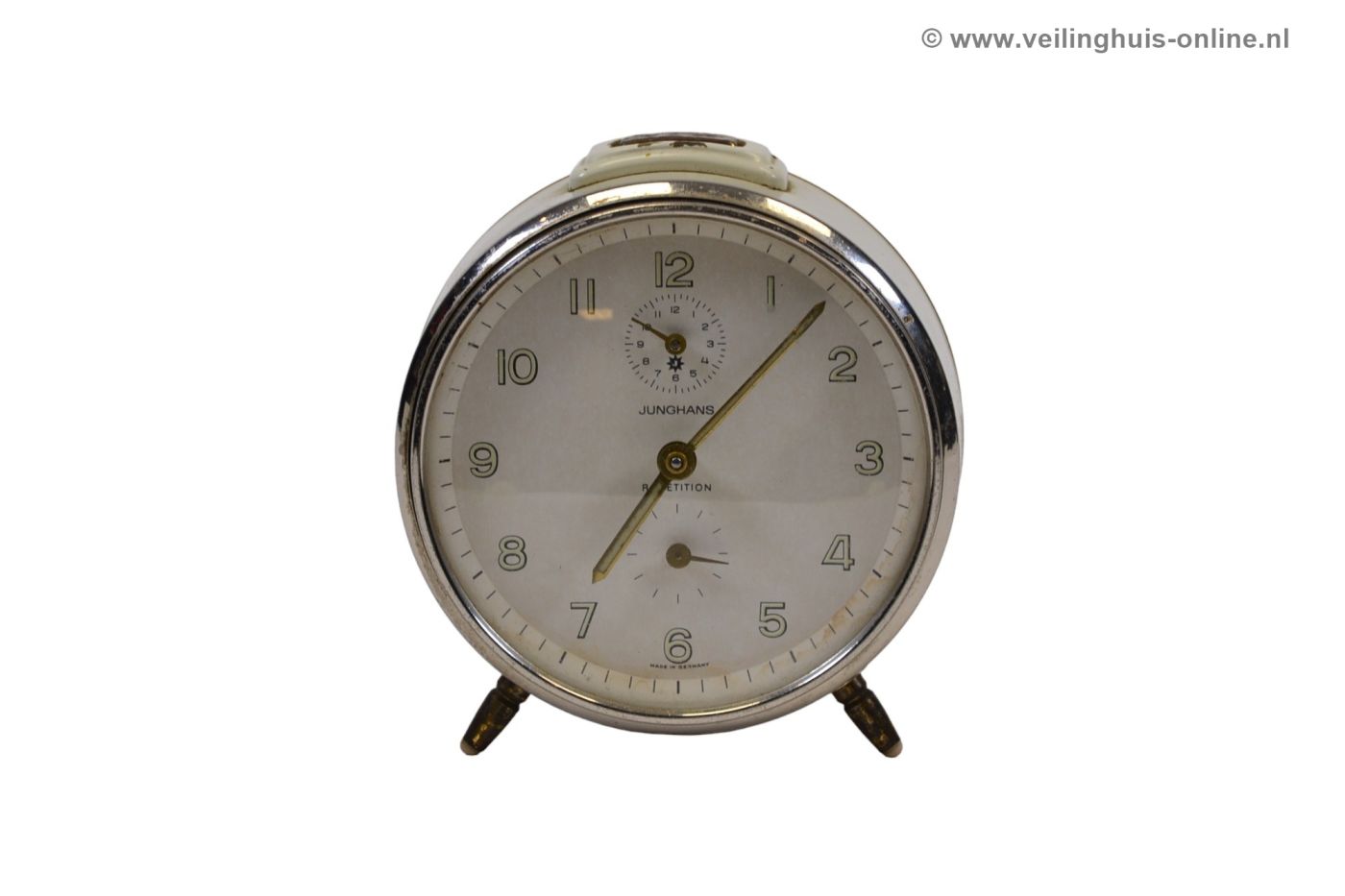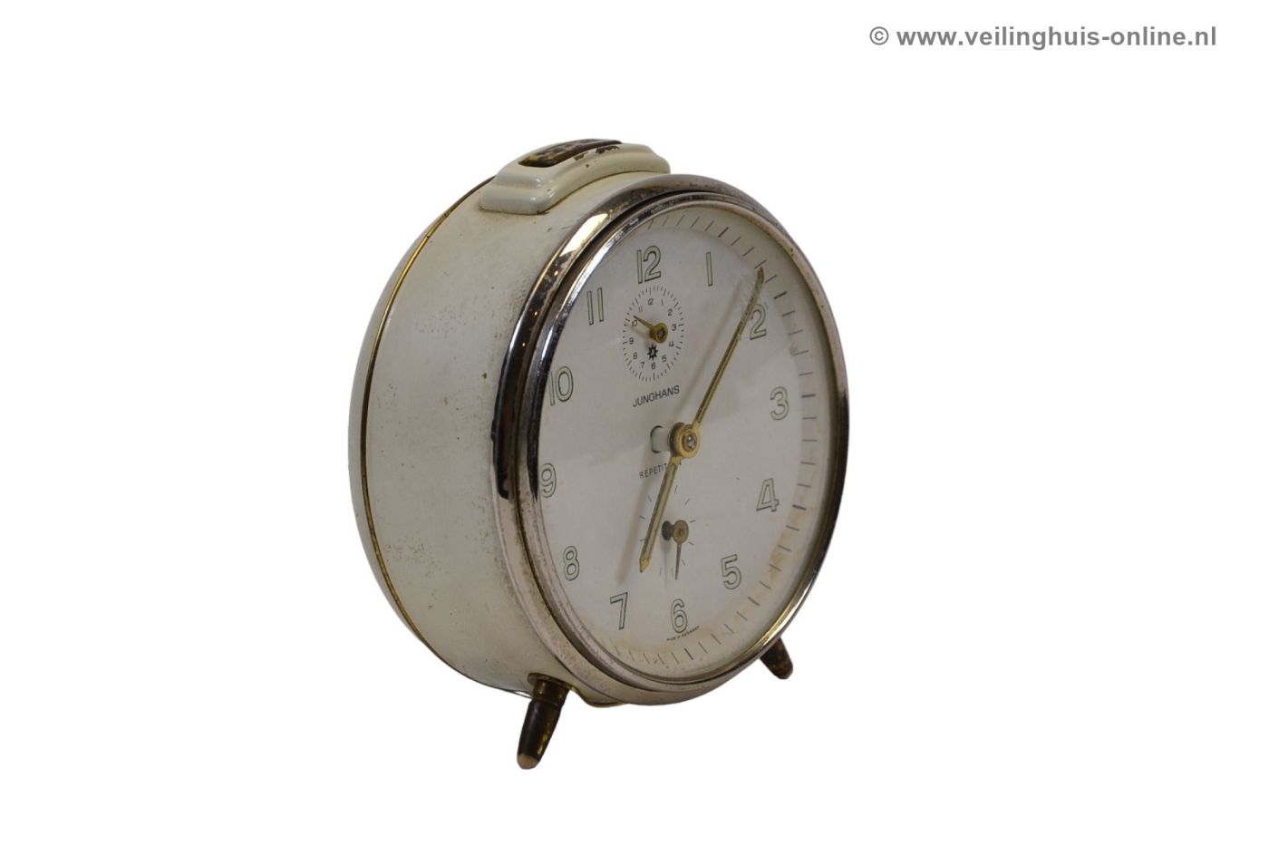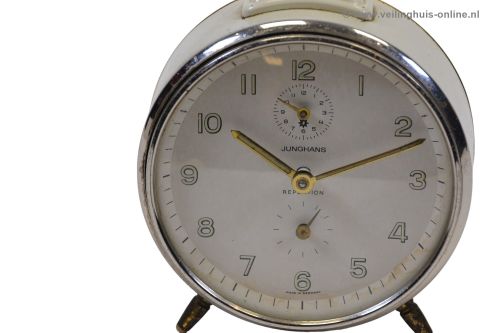 | Bijzonderheden | Goed werkende tafelklok/wekker Mechanisch - Opwindklok Junghans Repetition - Crème kleur |