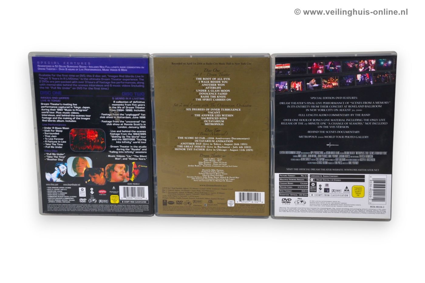 | Bijzonderheden | Dream Theater – Double Feature: Images And Words, Live In Tokyo - 0349703402 - 2004 Dream Theater - Score: 20th Anniversary World Tour - 0603497161928 - 2006 Dream Theater – Metropolis 2000: Scenes From New York - 085364022622 - 2000 |