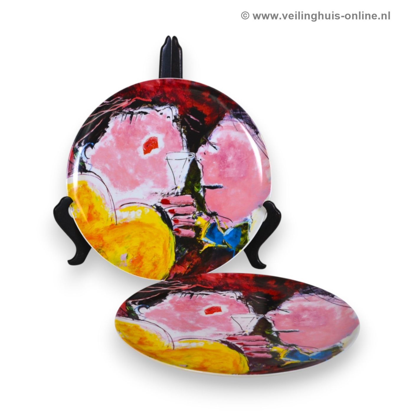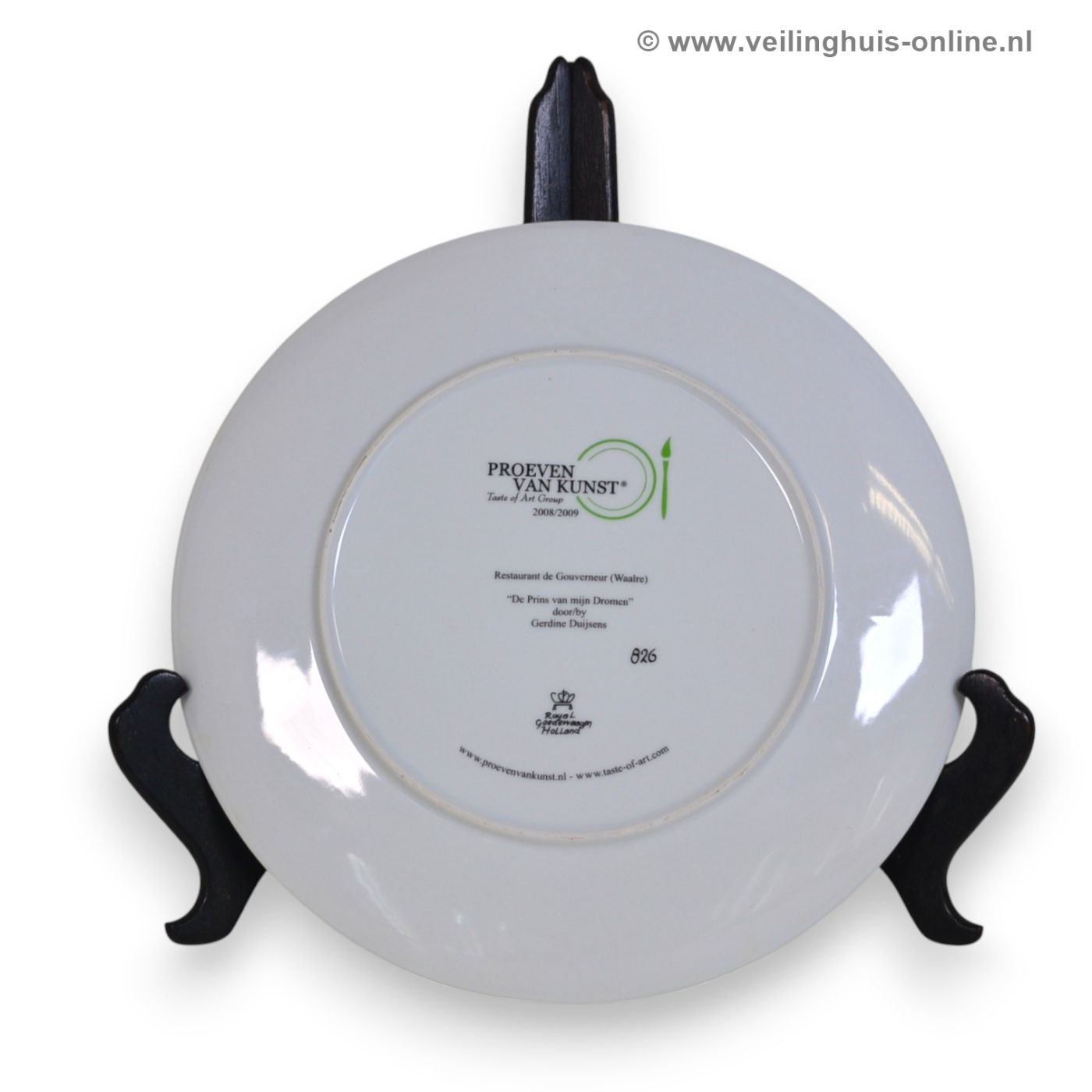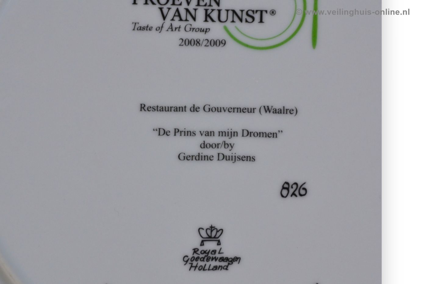 | Bijzonderheden | Twee grote borden uit de serie PROEVEN VAN KUNST. Restaurant de Gouverneur(Waalre) De Prins van mijn dromen door Gerdine Duijsens |