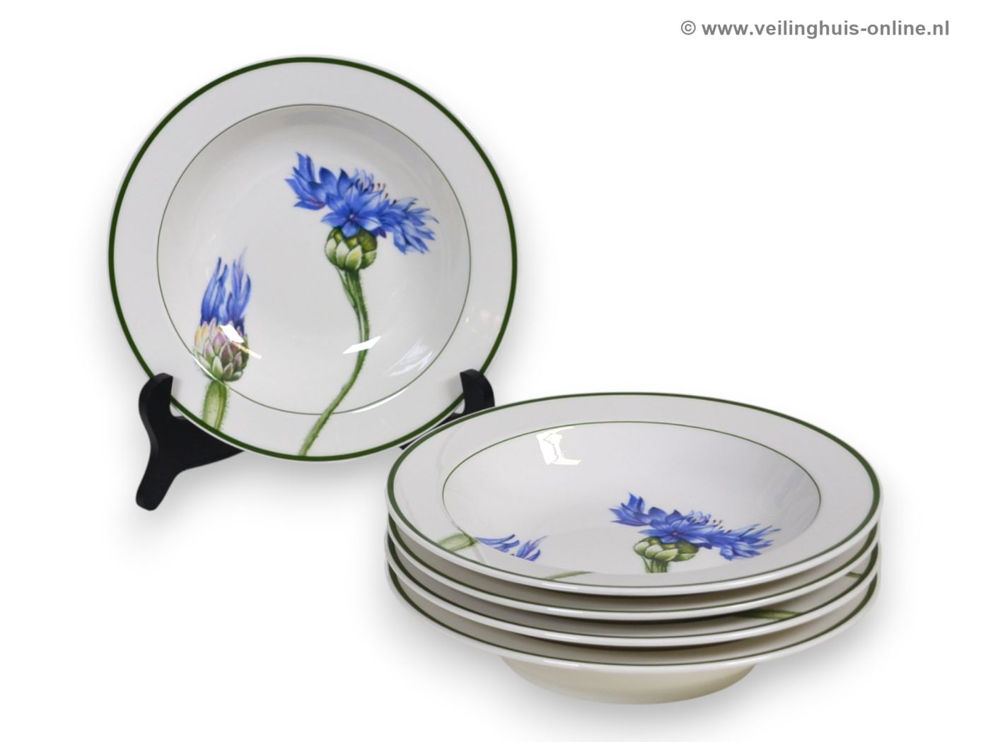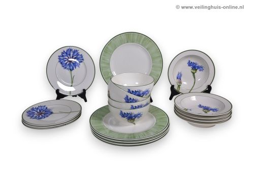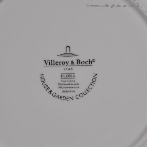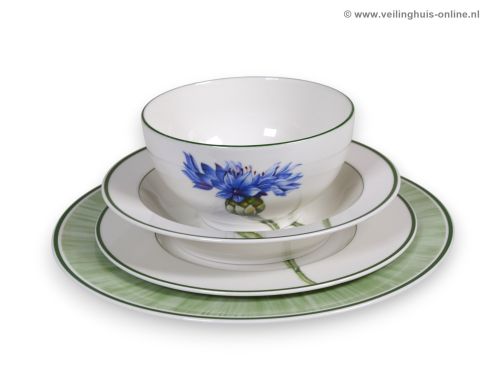 | Bijzonderheden | 18 Serviesonderdelen van het Flora servies van Villeroy & Boch 4 Schaaltjes Ø 14 cm - Hoogte 8 cm 5 Diepe borden Ø 20 cm 5 Dinerborden Ø 27 cm 4 Ontbijtborden Ø 21,5 cm Geschatte marktwaarde € 290,- |