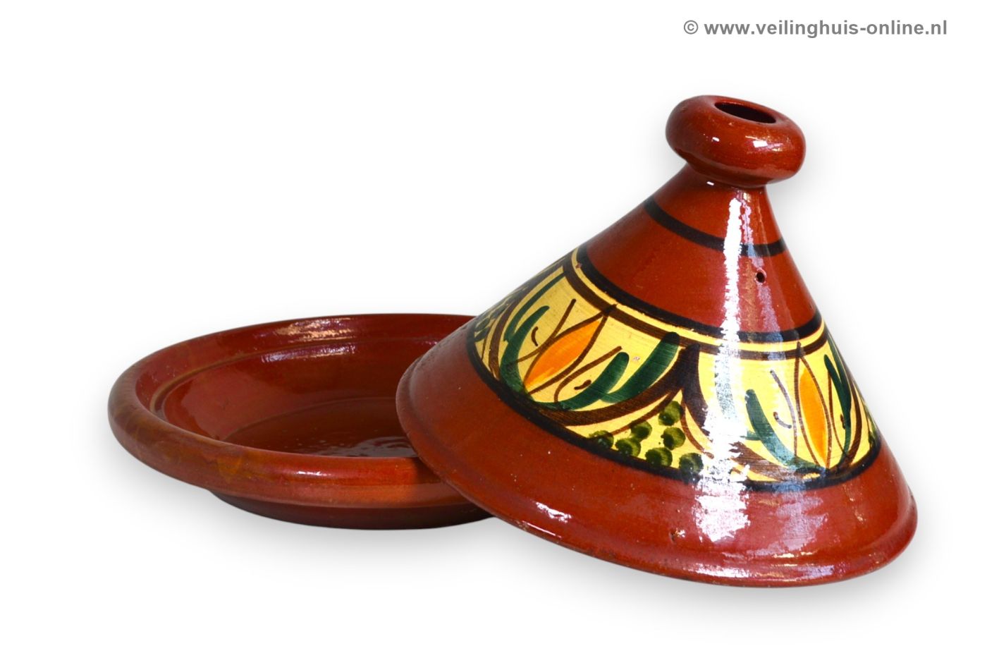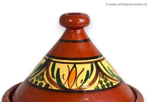 | Bijzonderheden | Marokkaanse tajine handgemaakt en van aardewerk. Door de speciale kegelvormige deksel loopt het verdampte vocht weer terug op de ingrediënten, omdat bij bereiding van gerechten in de tajine niet alleen alle sappen, maar ook alle geuren bewaard blijven, is het een ware geursensatie om de tajine op tafel in het bijzijn van alle eters te openen! De tajine wordt handgemaakt en beschilderd het kan voorkomen dat de tajine een onvolkomenheid vertoont (denk aan een verkeerde verfspatje, kleine oneffenheden). Enerzijds is dit de charme van het product. |