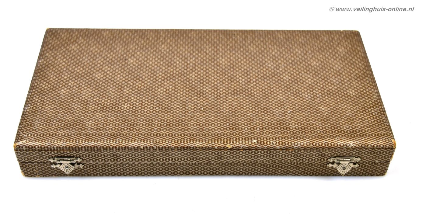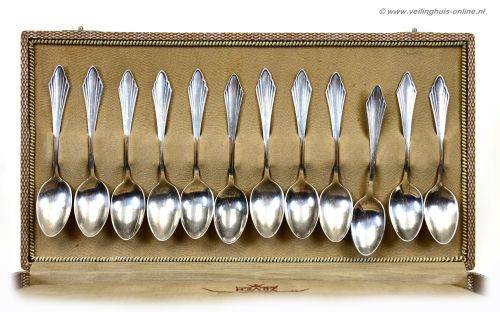 | Bijzonderheden | Twaalf verzilverde (100) theelepels in cassette |