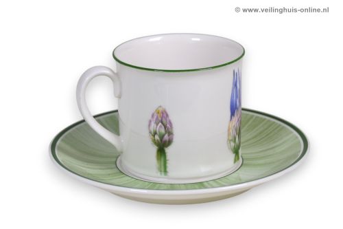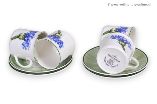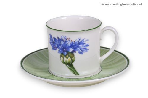 | Bijzonderheden | 11 Serviesonderdelen van het Flora servies van Villeroy & Boch 9 Kop & schotels 1 Suikerpot met deksel 1 Melkkannetje Afmetingen: Kopje: Ø 7,5 Hoogte.7 cm Schotel: Ø 14,5 cm Melkkannetje 0,2 Liter Suikerpot: Ø 10 cm - Hoogte 8 cm |