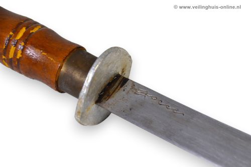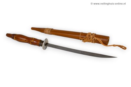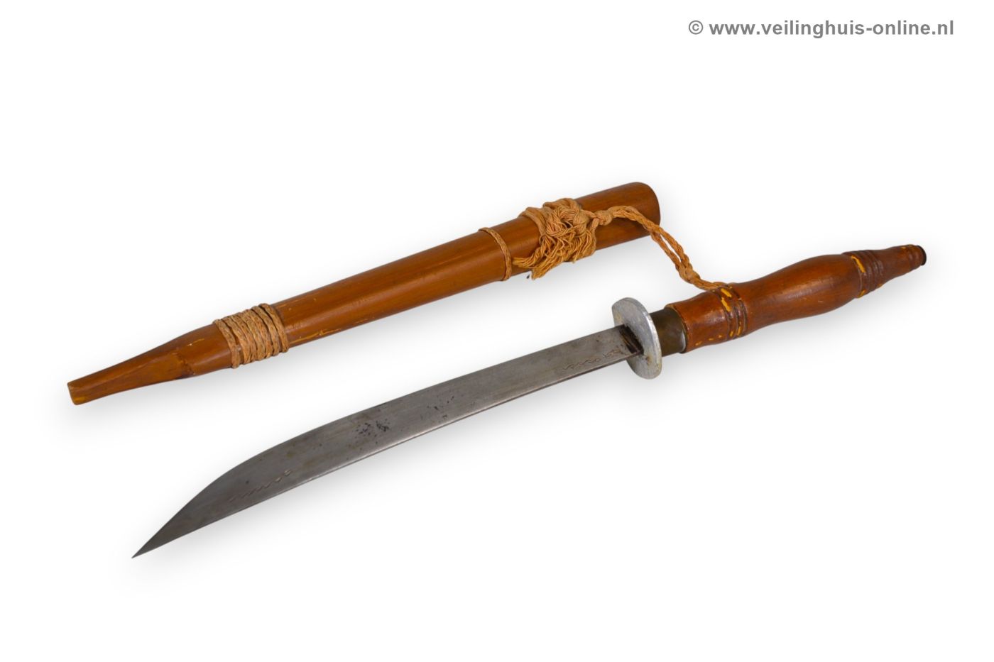 | Bijzonderheden | Dit traditionele antieke Thaise zwaard stamt uit de late 20e eeuw en staat bekend als een daab of dha. Ze zijn te vinden in Birma, Laos, Thailand en Cambodja en zouden al in de 16e eeuw dateren. Deze zwaarden werden thuis bewaard voor persoonlijke bescherming. Wettelijke aspecten in Nederland In Nederland mag je een zwaard bezitten als je ouder bent dan 18 jaar. Echter, het dragen van een zwaard op de openbare weg is niet toegestaan, tenzij het goed verpakt of verborgen is. Mensen die voor hun werk (bijvoorbeeld bij ceremoniële gelegenheden) een zwaard moeten dragen, moeten een document kunnen tonen waaruit blijkt dat ze een geldige reden hebben. Verkoop 18+ Geen verzending mogelijk |
